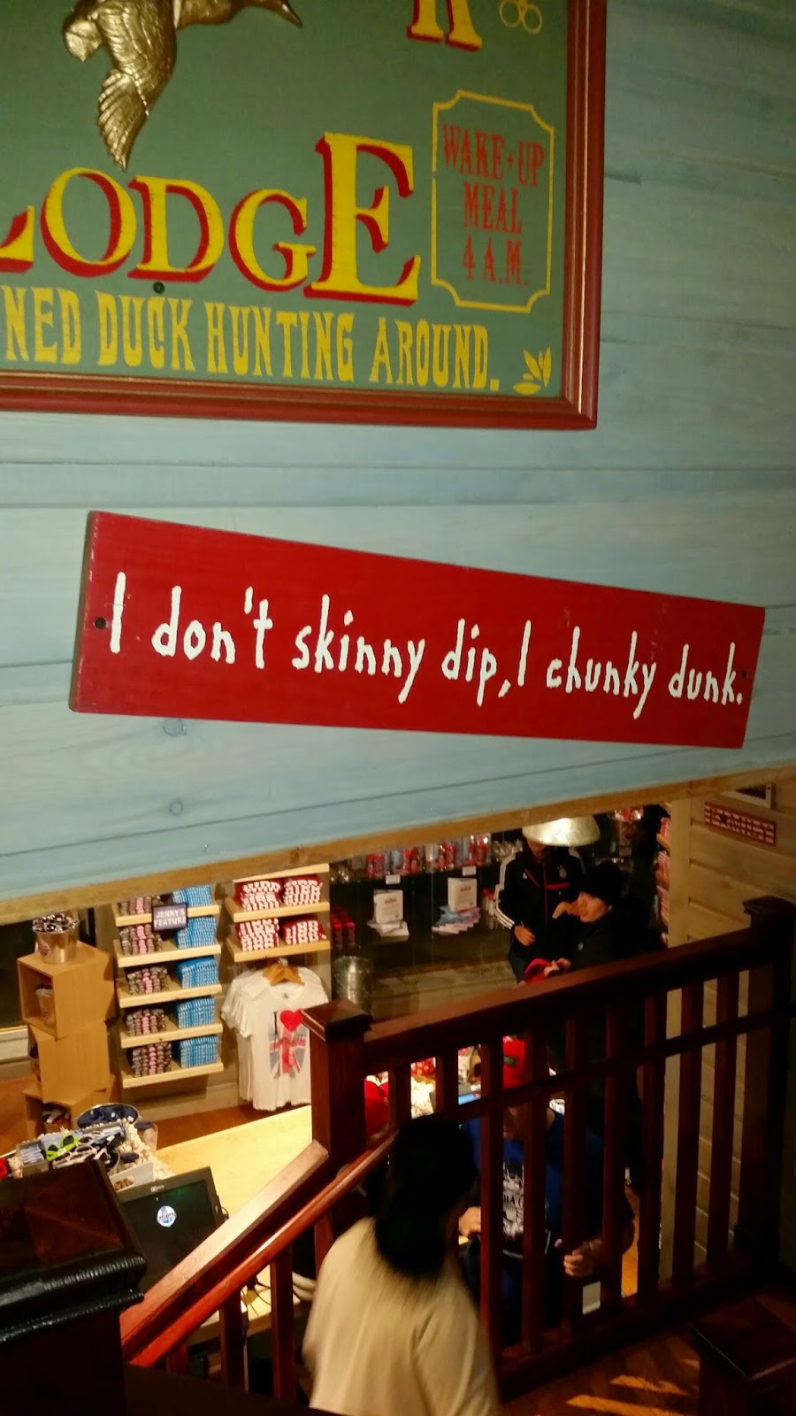 So the day finally came for me to make my first visit. Upon entry you come to the gift shop selling all things 'Forrest Gump' related which is exciting in itself. To get to the restaurant and bar you have to go up a staircase which is wooden and decorated with all things from the film or from the south during the time period in which the film was set. My favorite thing in the restaurant was a sign going up the stairs saying "I don't skinny dip, I chunky dunk" which sounds a bit like someone I know haha.